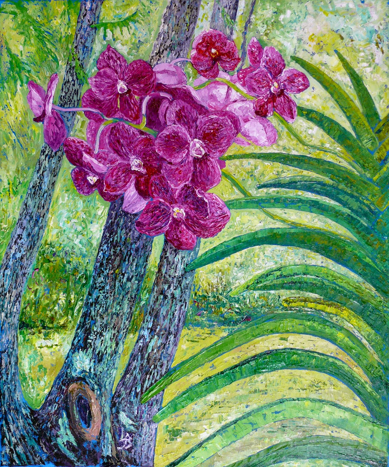 This painting is of Vanda Orchids I saw at the Orchid Show at Kanapaha Gardens in Gainesville, Florida.